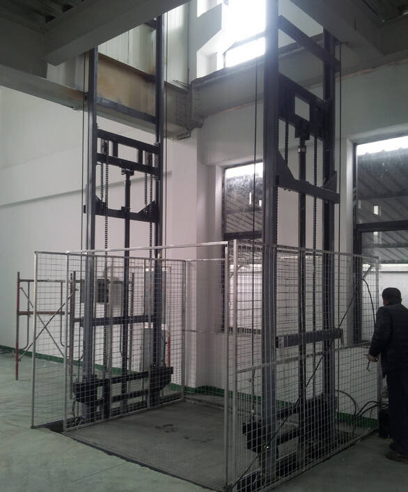 導軌式升降機是一種非剪叉式液壓升降機械設備。用于二三層工業廠房,倉庫,酒樓樓層間的貨物傳輸。高度在150-300mm,尤其適合不能開挖地坑的工作場所。并且無須上部吊點,形式多樣化(單柱,雙柱,四柱)。設備運行平穩,導軌式升降機的導軌一般為槽鋼、H鋼,方管焊接制成,操作簡單可靠,貨物傳輸經濟便捷。