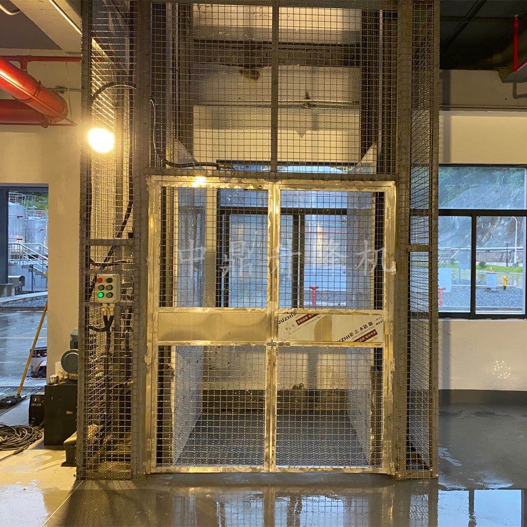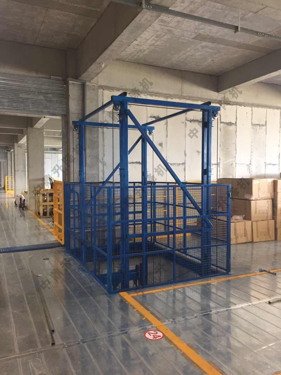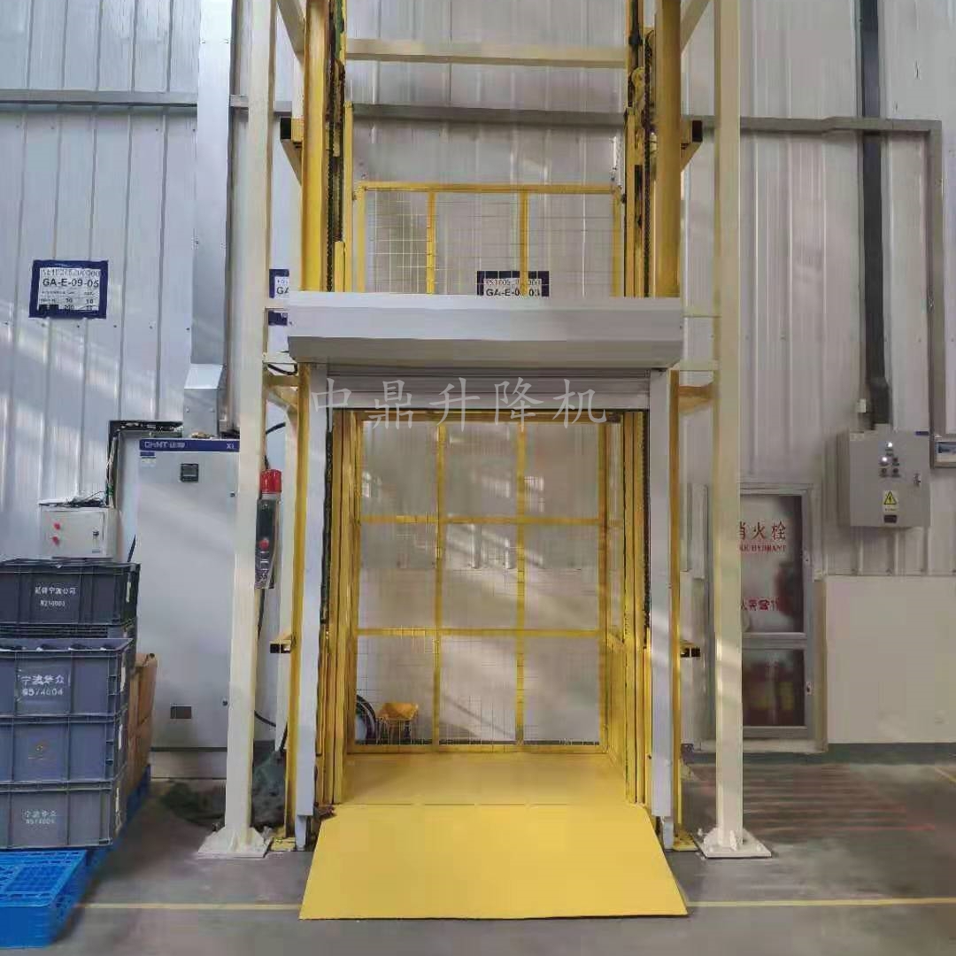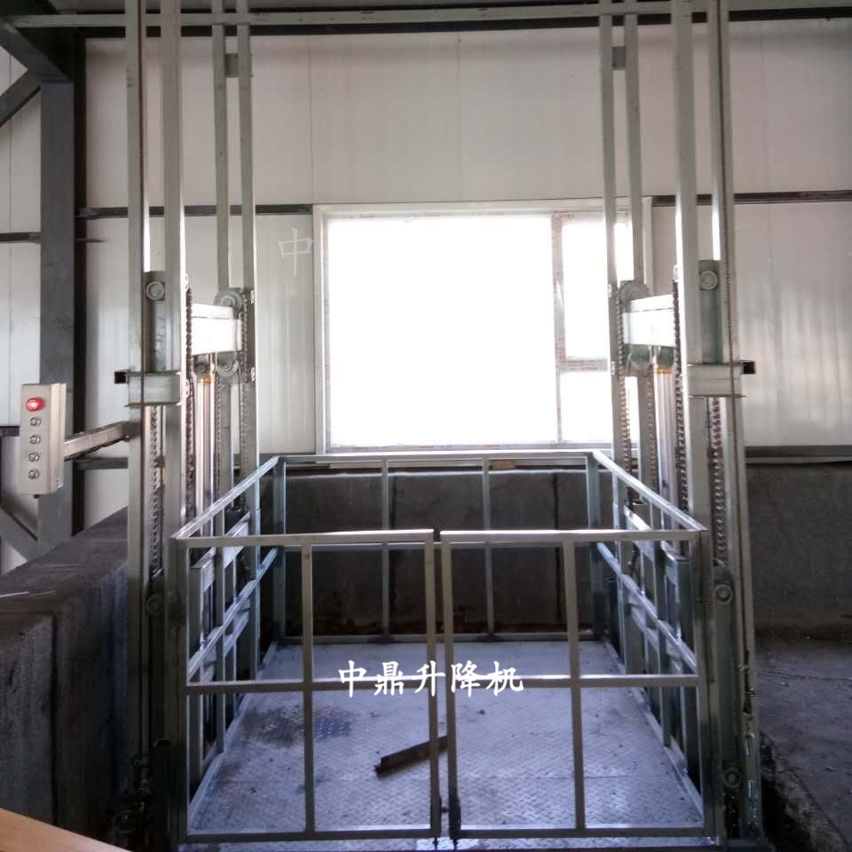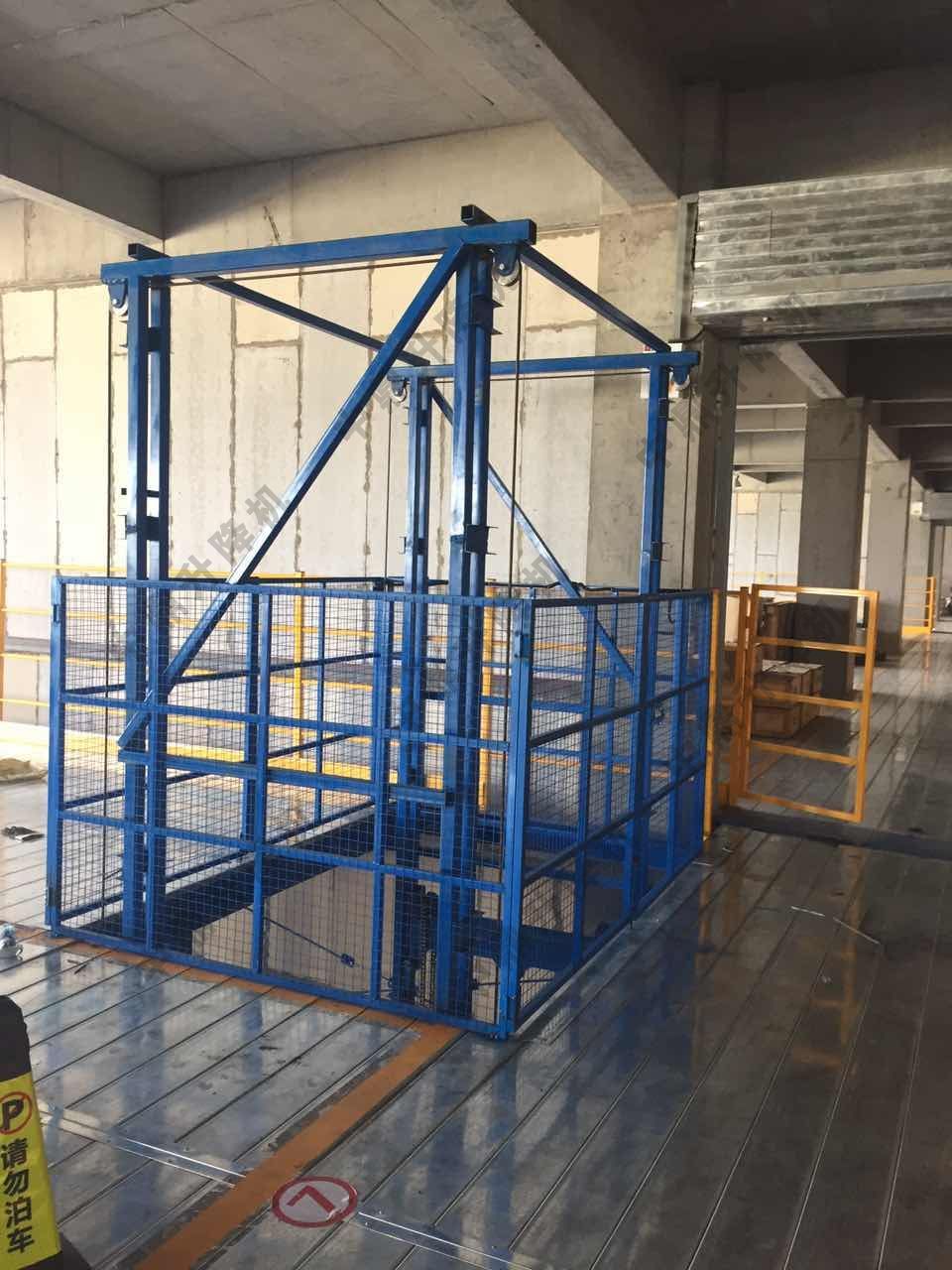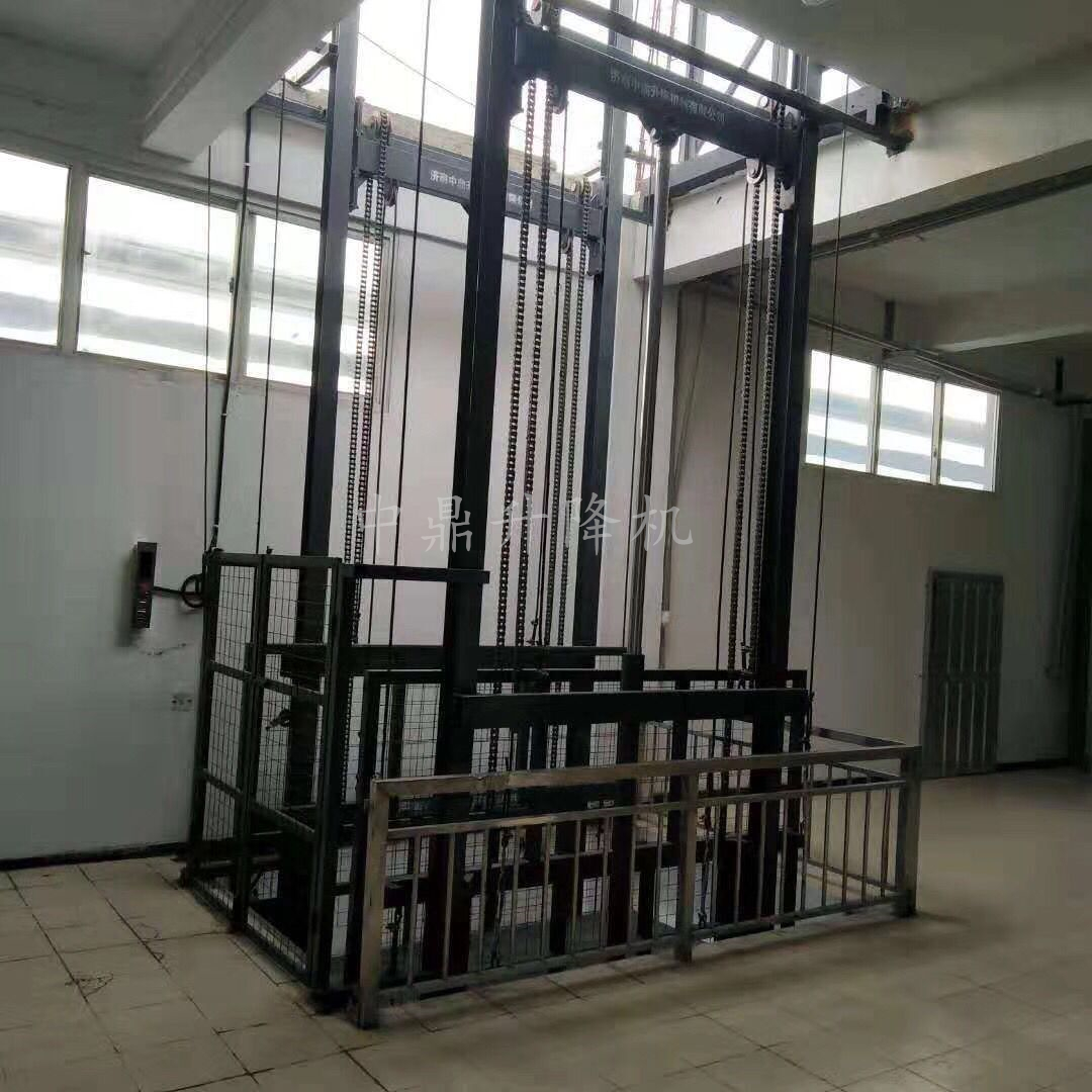 導軌鏈條升降機,主要用于樓層間高空貨物運輸。