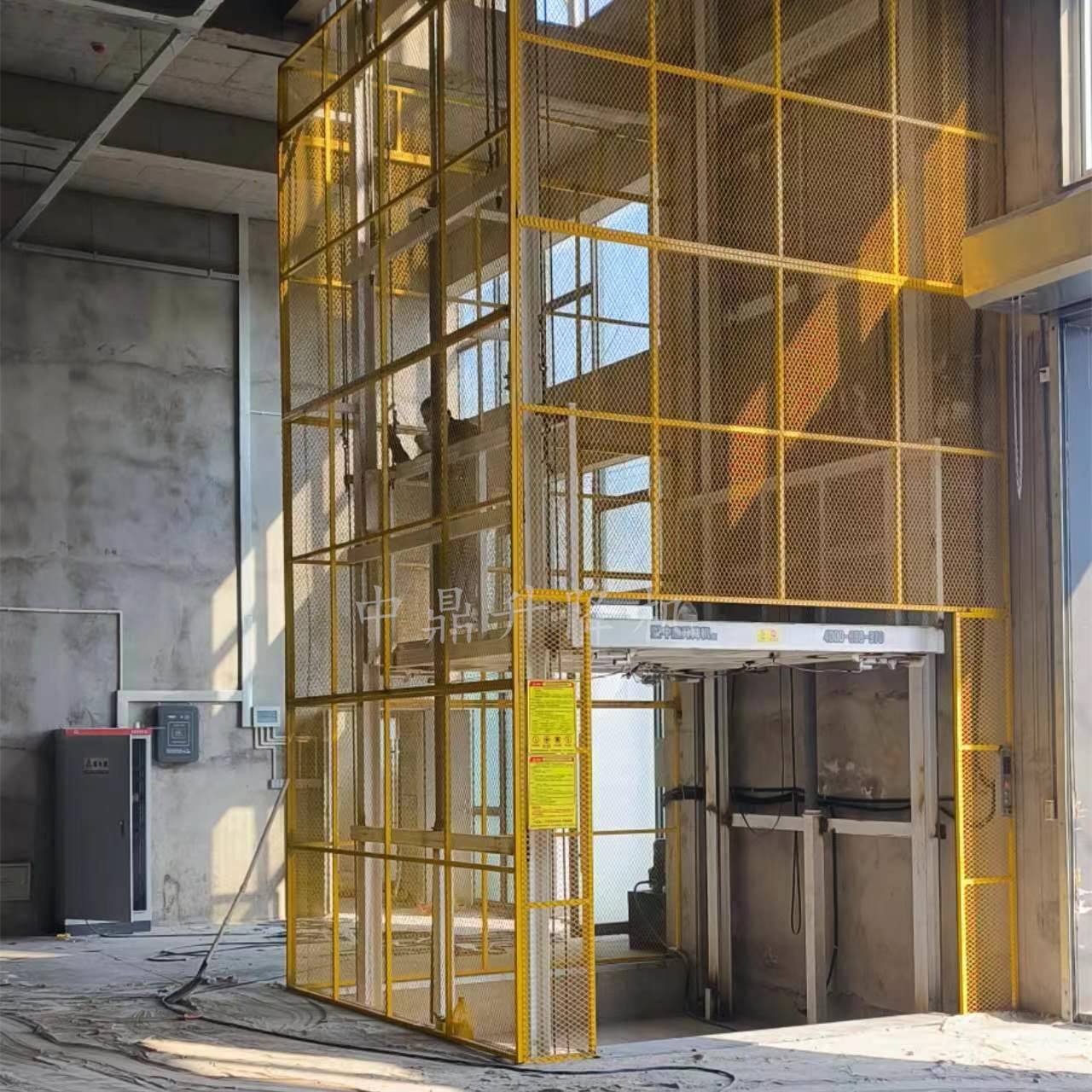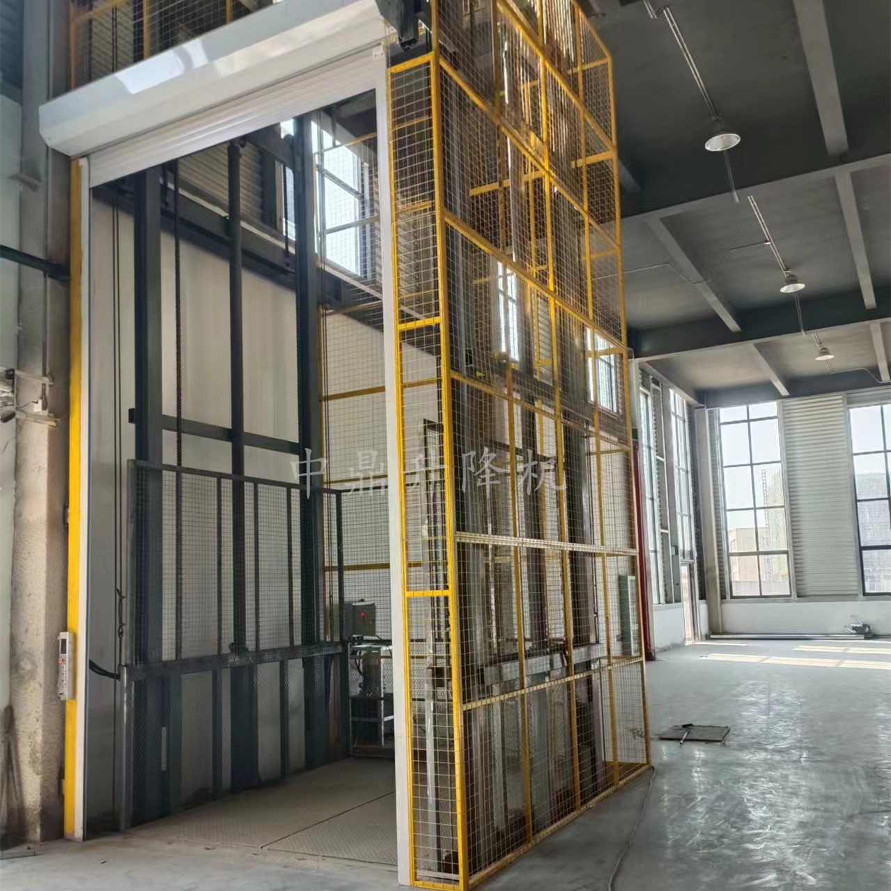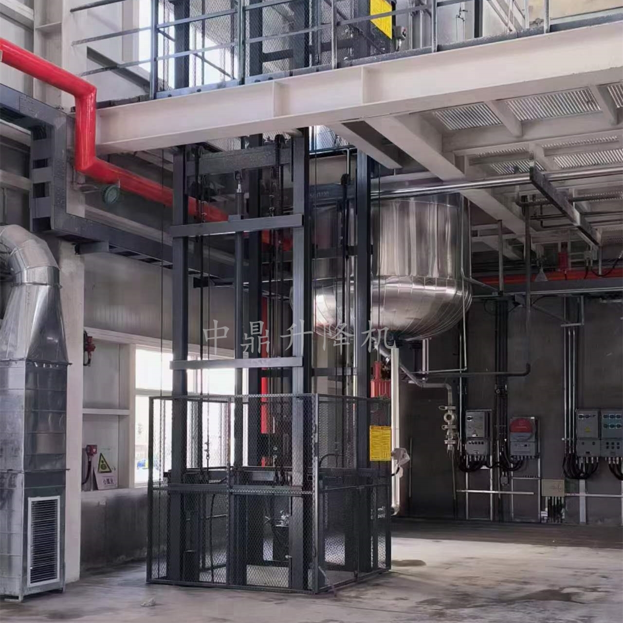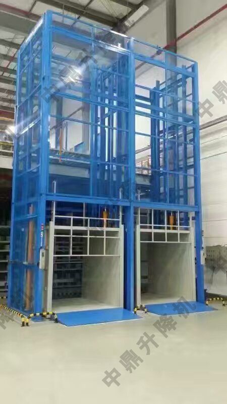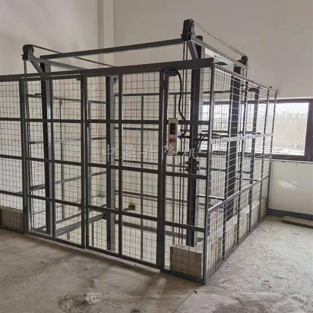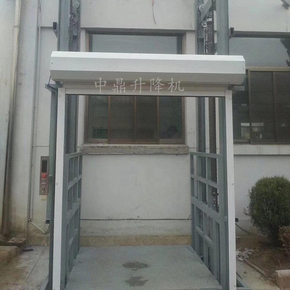導軌鏈條升降機,主要用于樓層間高空貨物運輸。