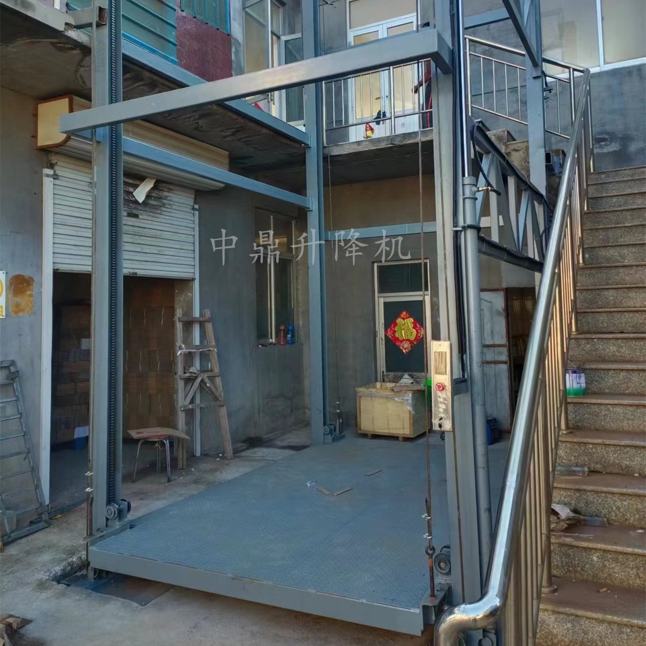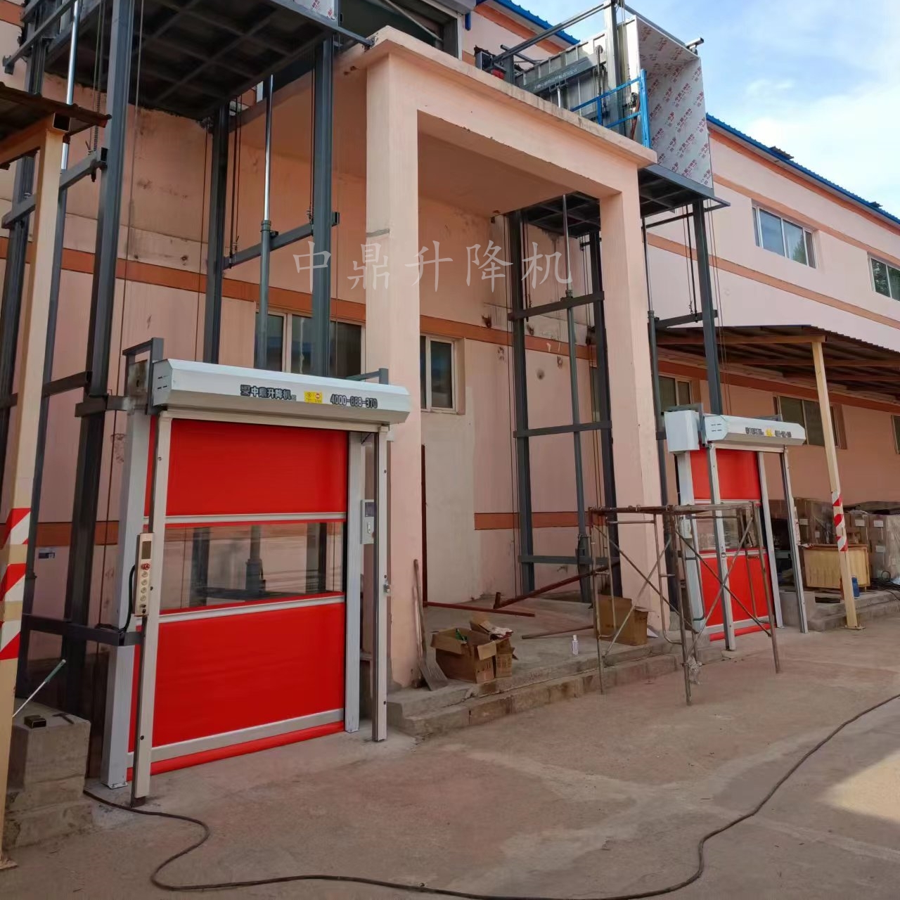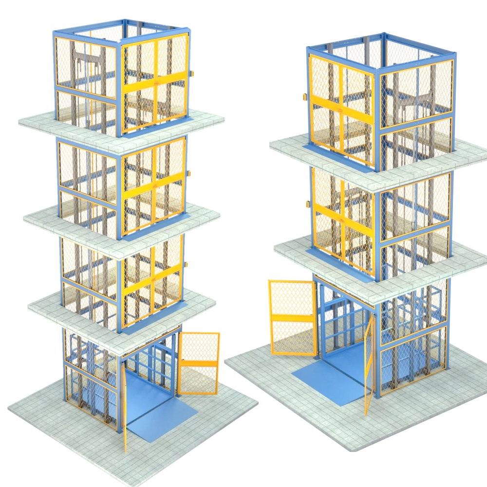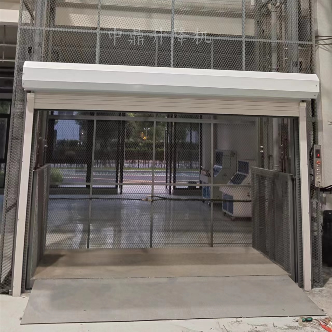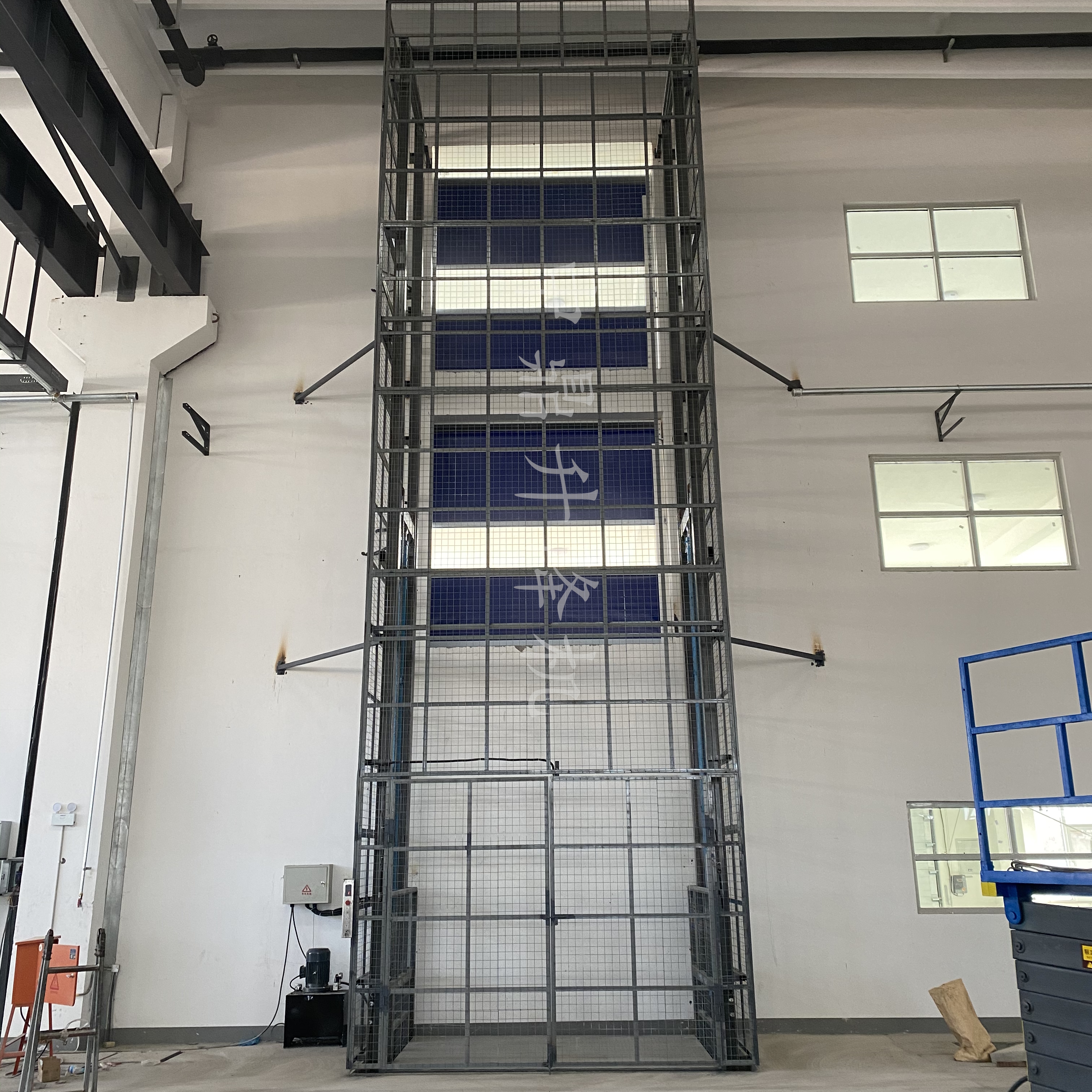 導軌鏈條升降機,主要用于樓層間高空貨物運輸。