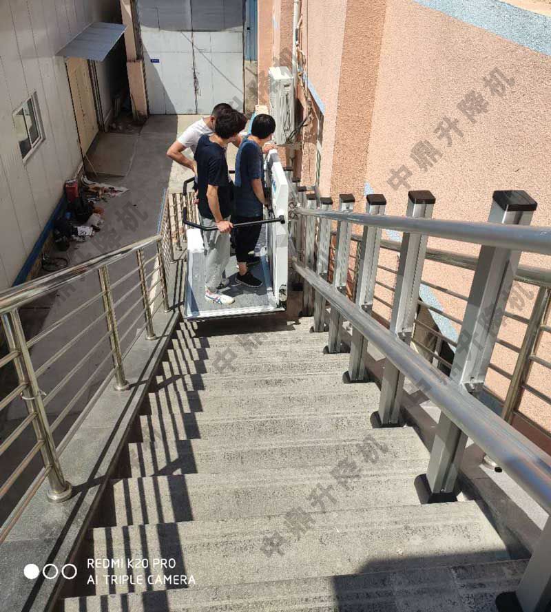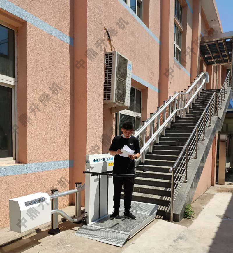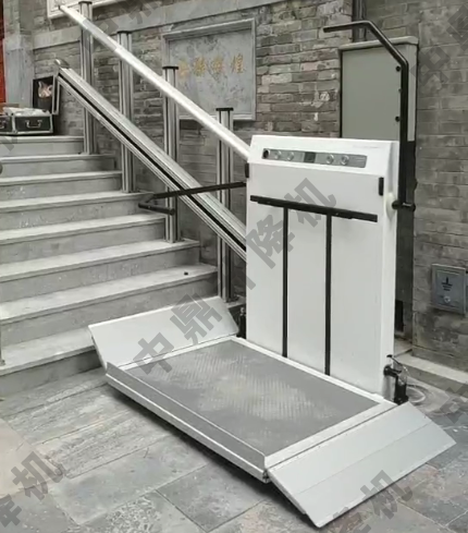 斜掛式升降平臺(tái)是一種安裝在樓道系統(tǒng)利用電機(jī)牽引沿著軌道上下移動(dòng)并運(yùn)載乘客的無(wú)障礙安全裝置。它由驅(qū)動(dòng)系統(tǒng)、導(dǎo)軌、繩輪鏈、移動(dòng)平臺(tái)等組成。